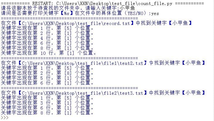flag = input("请问是否需要打印关键字【%s】在文件中的具体位置(YES/NO):")