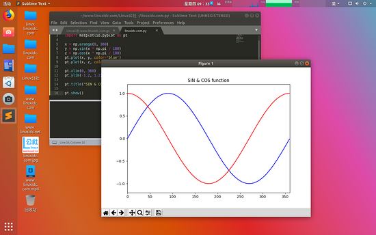 下面我们加上一个 COS 函数图形,并且使用不同的颜色来表示。