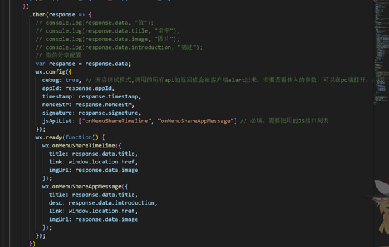 就这样我们的分享IOS需求就实现了,不需要在去改动我上面的微信分享配置的代码!!但是此方法个人想的只适用于分享特定页面,如果用户需要分享每一个页面不同的自定义内容,可以去网上找使用其他的路由守卫判断,或者用Hash模式来开发 (Hash模式我也不确定是否真的可以,有兴趣的可以尝试,尝试后欢迎留言!!)