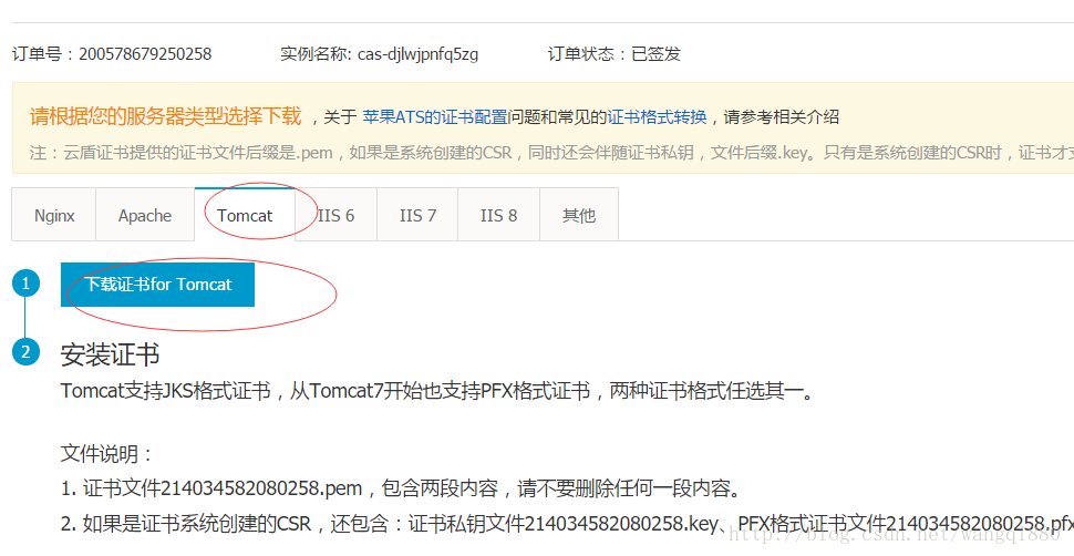2下载证书,我这里是因为用户并发不高,所以直接使用tomcat