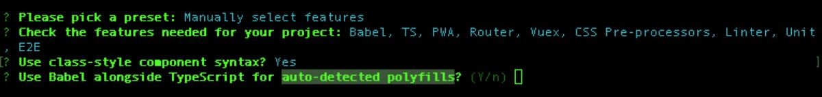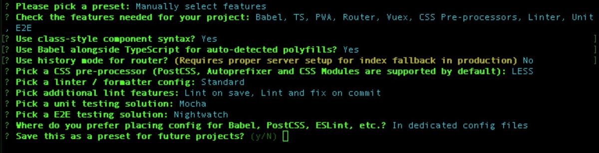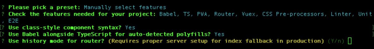 该配置项:是否使用 history 模式 ( 该模式含义以后我会介绍 - 官网也有介绍 ),选择 no 。