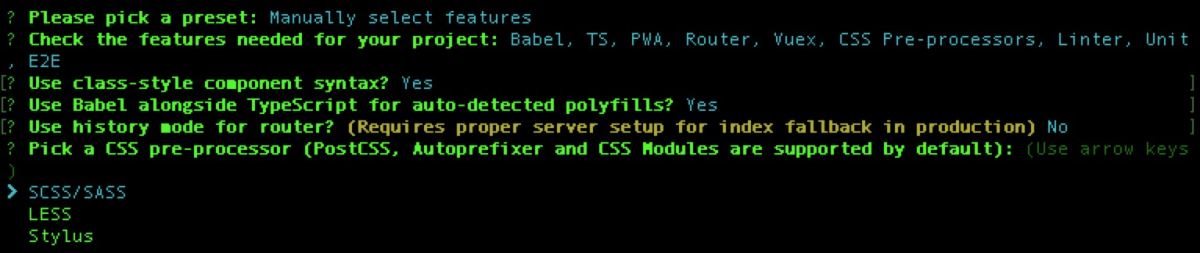 该配置项:选择 css 预处理 ( 我没用过 css 预处理器 ),任意选择了一个。