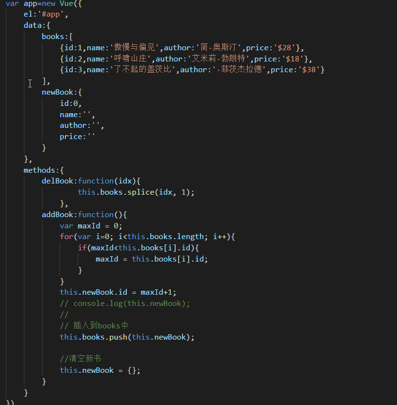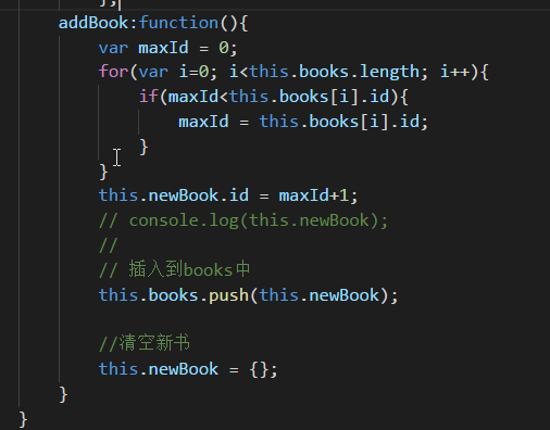 当我们点击添加新书的时候,如果新书的id值比之前的书籍列表的值大,就添加在书籍末尾,否则就添加在对应的id处。