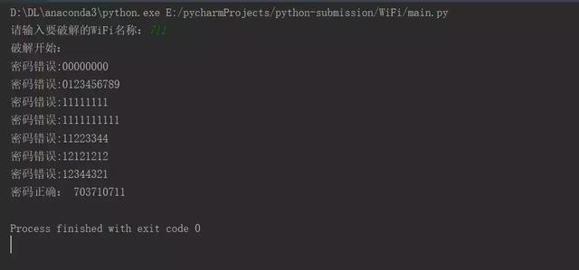 当然这种暴力破解需要有一个数据库样本,比如有数十万的破解密码的样本。这样通过充足的时间,可以用来尝试。本文只是从技术的角度来阐述如何利用python来玩WiFi,来学习Py wifi这个库!并不建议大家做任何破坏性的操作和任何不当的行为。
