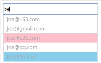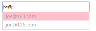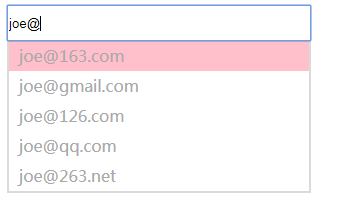- 根据下面需求实现如示意图所示的邮箱输入提示功能,注意,根据要求只需实现下面功能