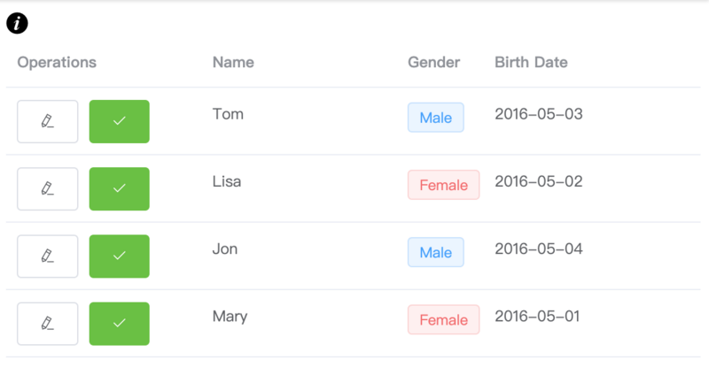 <el-tooltip content="Click on any of the cells or on the edit button to edit content">