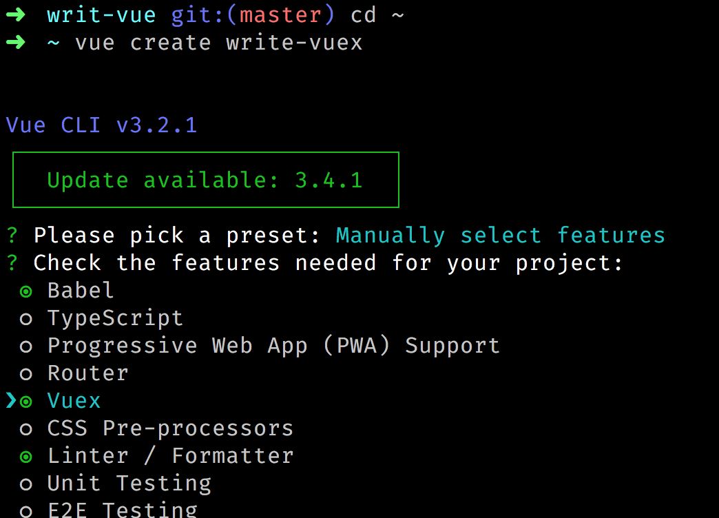 首先用vue-cli创建一个项目工程,如下图,选择vuex,然后就是一路的回车键