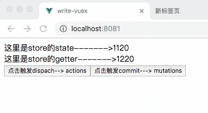 至此,我们把vuex的代码实现了一遍,在我们App.vue的代码里添加