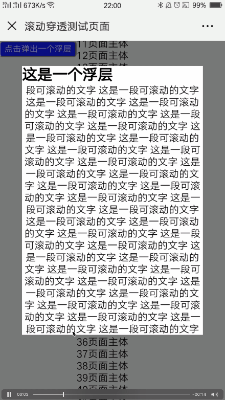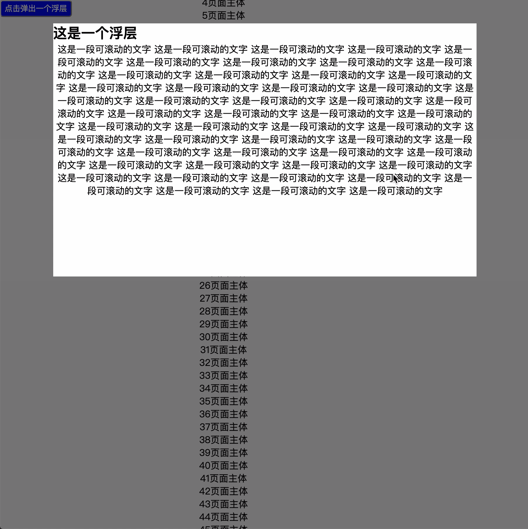 当页面出现浮层的时候,滑动浮层的内容,正常情况下预期应该是浮层下边的内容不会滚动;然而事实并非如此。