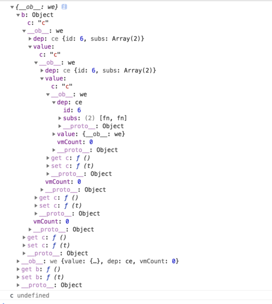 // 这样被观察属性的所有子属性都将会收集到观察者,从而达到深度观测的目的。
