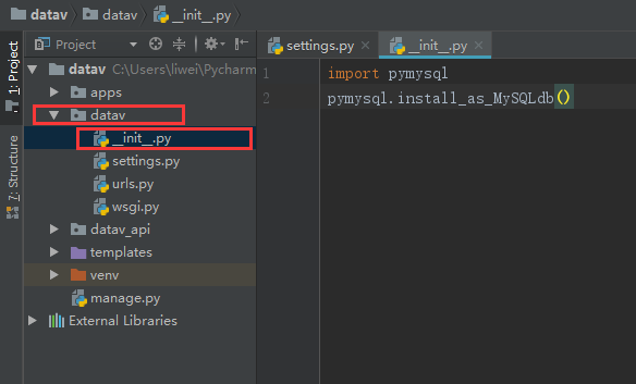2.然后,在项目文件夹下的_init_.py添加如下代码即可。