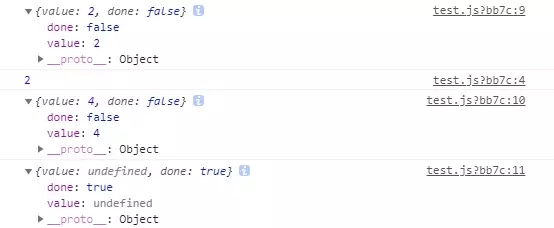 console.log(result.next(2));//此处返回第二次yield的值 4