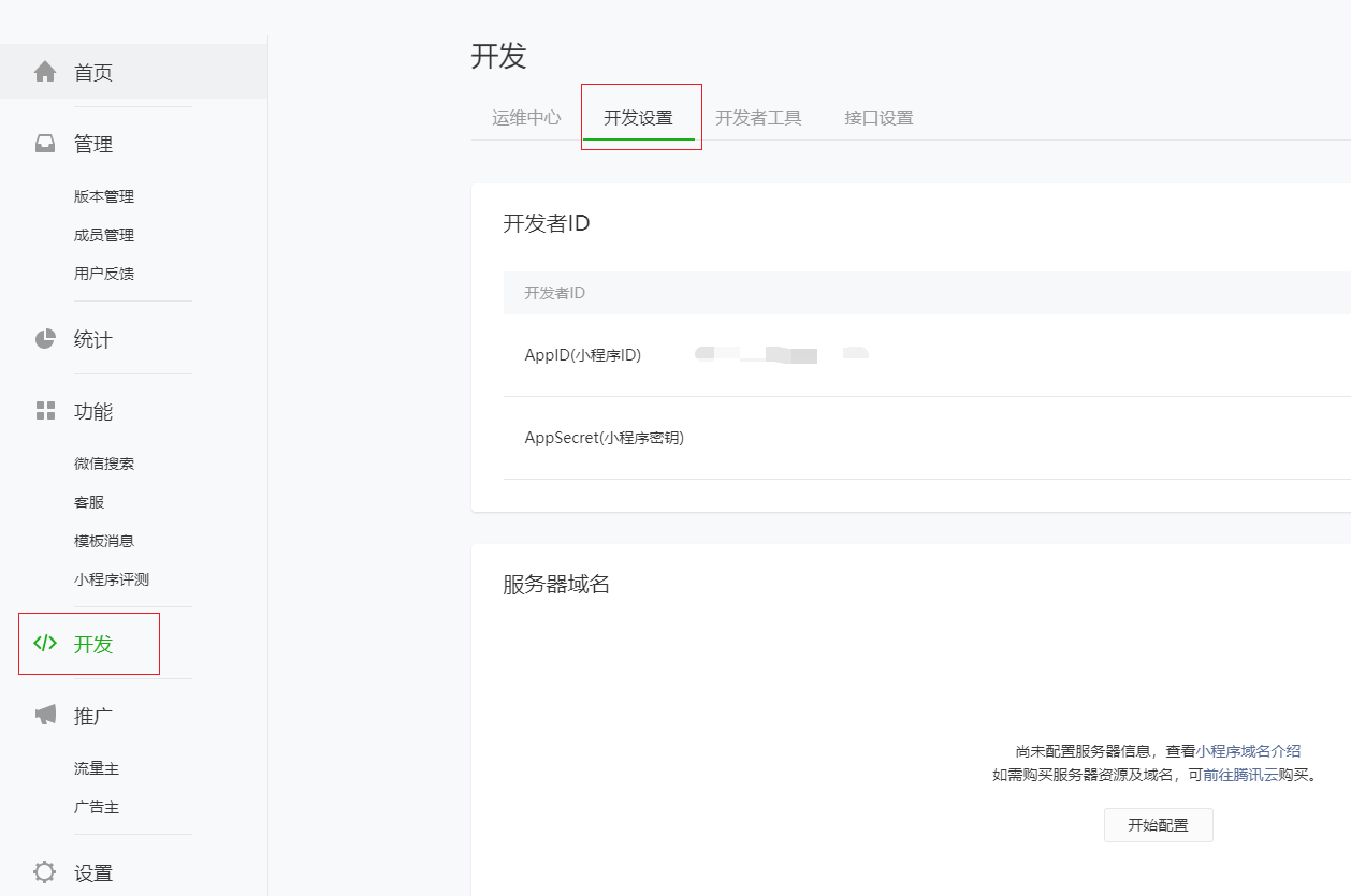 在完成注册后,切换到开发->开发设置,可以查看开发者ID。
