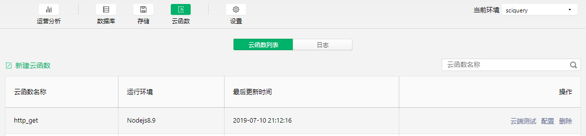 4.调试云函数。云函数的调试可以通过云端调试:IDE界面->云开发->云函数,选择相应的云函数即可进行调试。点击调试后即可返回调试结果,可以根据结果对函数进行修改。
