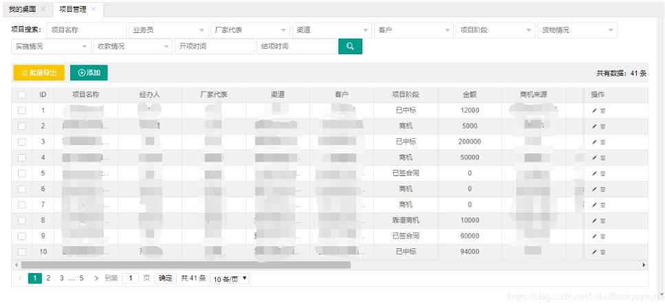 elem: ‘#projectList': projectList为表格id, page: true: 设置表格分页, url: ‘/project/list' :数据请求url fixed: true:固定列 done : function(res, curr, count){…}:数据加载成功后的回调函数