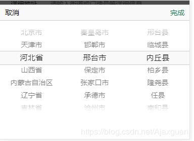 本文实例为大家分享了vue移动端城市三级联动组件的具体代码,供大家参考,具体内容如下