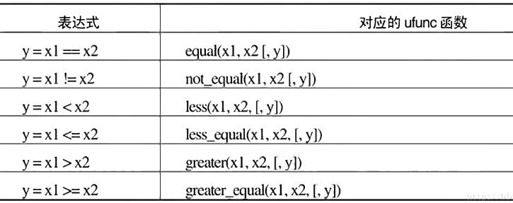 numpy同时提供了=、<、>等这些比较运算符,这些运算符的结果是bool值或者bool数组。