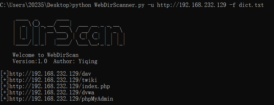 parser = OptionParser('python WebDirScanner.py -u <Target URL> -f <Dictionary file name> [-t <Thread_count>]')