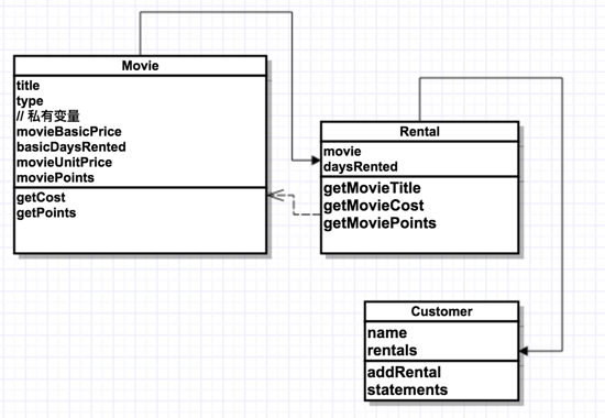 - 用户类中承担了不属于它的职责,包括:收费规则、积分规则。这些职责应该是属于电影类型的。