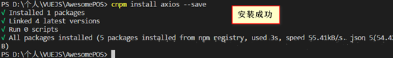 由于axios是需要打包到生产环境中的,所以我们使用–save来进行安装。
