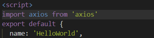 我们在.vue页面引入Axios,由于使用了npm来进行安装,所以这里不需要填写路径。