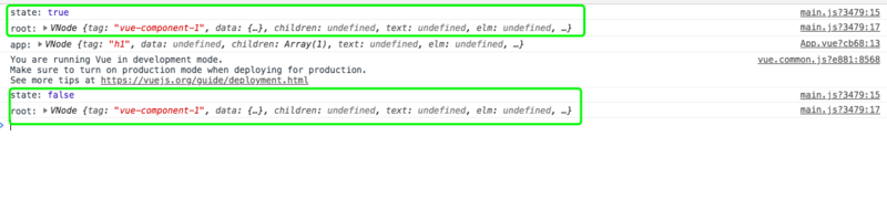 在main.js中 state 状态发生了变化,由false => true, 触发了自身与子组件的render方法。