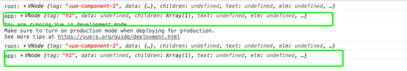 我们把Vue的实例挂载到#app, 会调用实例里面的render方法,生成虚拟DOM。来看看什么是虚拟节点,把例子修改一下。